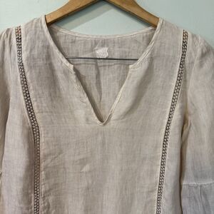 120% Lino Womens 100% Linen Beige Lace Dress Size 38 US XXS ( Fit XS)
