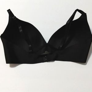 CATHERINE MALANDRINO Black Satin Trim Full-Figure Plunge V-Neck Push-Up Bra SIZE 38-C NWOT