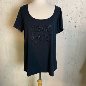 #121 Vintage DKNY Washed Black Stud Logo Tee Shirt
