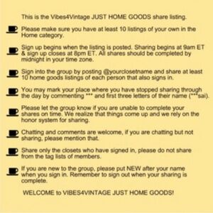 Vibes4Vintage Share Group invites you to sign up, share your home goods and have a fun time! We share both old and new home items in this group. We believe that “your Vibe attracts your Tribe“ and our vibe is open, friendly, fun, and we hope zero drama! We encourage everyone to share, chat, browse, and make some sales!