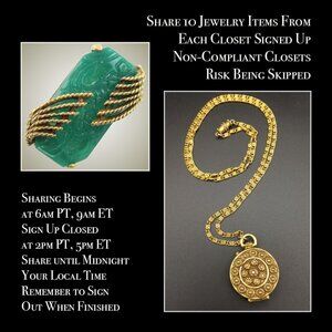 ❌ REMEMBER to share 10 JEWELRY ITEMS FROM EACH of the closets listed below! Thank you for spending part of your day with us! Hope everyone had a grand time… Join us tomorrow for more Just Jewelry!