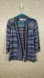 Alfred Dunner blue, rust and brown striped cardigan sweater, size petite large. In very good pre-owned condition. Cotton blend with an open front. Underarm to underarm 40" around, sleeves 20", length 27.5". Item number 12258-146-400-101125.