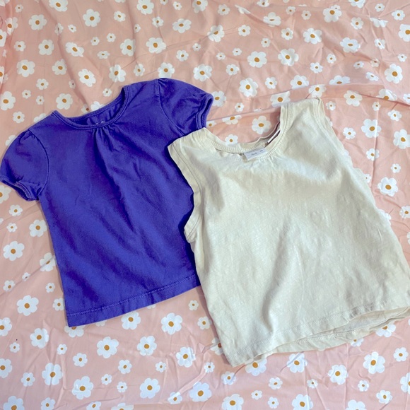 12-18M bundle. Purple tee and beige tank from Zara. In GUC, not stained or ripped. Smoke-free, dog-friendly home, freshly washed with scent-free detergent and pressed.