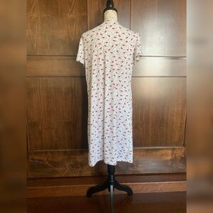 Experience ultimate comfort with Secret Treasures' casual nightgown, featuring a delightful pink and red floral bird print. The scoop neckline and flutter short sleeves add a touch of elegance to this relaxed sleepwear essential.