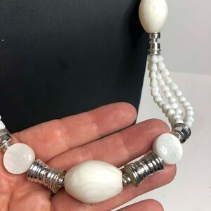 1228 CHICO'S silver tone beaded layered statement necklace WHITE 36-38"