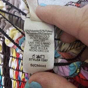 1.2.3 Vibrant Multicolor Smocked Midi Dress Attached Beaded Necklace S Small