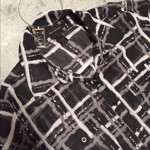 Great shirt! Optional roll up sleeves with button tabs. Wore once for work and then lost weight so my loss is your gain! Size 18-20