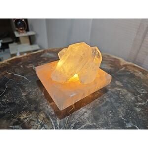 This satin spar recharging plate comes with three huge quartz crystals and an LED light, making it the perfect addition to any crystal collection. The natural shape of the crystals adds to their unique beauty, making them a great conversation starter.