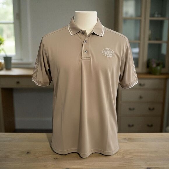 125 Louisville Slugger Men's Beige Polo Shirt Short Sleeve Embroidered Logo Lrg