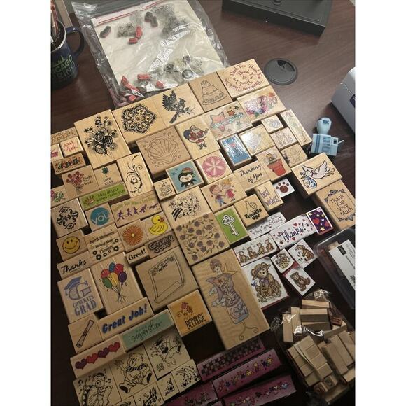 125 Rubber Stamp Lot Christmas Baby Animal Beat Flower Words Phrase Vtg Scooby