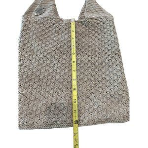 12.5” x 12.5" MERONA Tan Woven CROCHET 2 Handles SNAP CLOSE Lined BAG