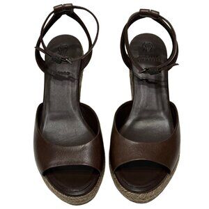 $1250 Brunello Cucinelli brown leather espadrille wedges size 8/38