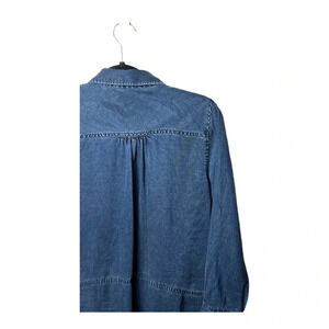 1252. SOFT SURROUNDINGS DENIM BUTTON UP TOP ROUND BOTTOM POCKETS SIZE SMALL BLUE