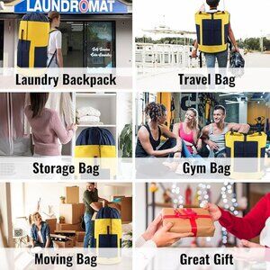 A large pocket on the front provides extra storage space for laundry detergent or softener or shoes, and two side pockets for your phone, cash, laundry cards, keys.