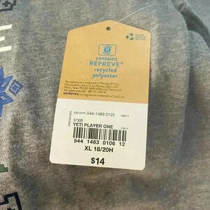 126. “Yeti Player One” Kids Graphic Tee, Grey, size XL