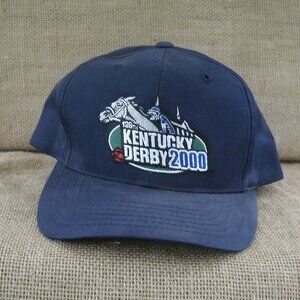 126th Kentucky Derby ball cap from 2000. Navy blue cotton type material. Embroidered logo on front. Snap together, adjustable back. Made by All Pro Championships. For men or women. Good condition, no tears or stains. Cap is crisp and clean, but has some color rubbed off on front inside edge above bill. Great for any Kentucky Derby fan.