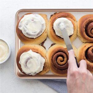 -【PFOA/PTFE-FREE】: Baking pan covered with non-toxic coating in all aspects to prevent scratching during use while ensuring food safety and giving your family better food quality assurance.