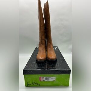 Sam Edelman boots, wide calf boots, whiskey leather boots, brown riding boots, tall leather boots, knee-high boots, fall fashion boots, size 6 boots, new with box