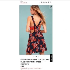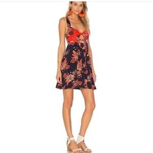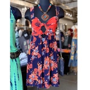Free People mini Unusual dress. Adorable boho chic dress that has a bandeau style bodice with knotted detail, cutouts, and a smocked back. Beautiful orange and blue color combination. retails for $128!