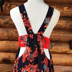 FREE PEOPLE BABY IT'S YOU FLORAL PRINT V-NECK MINI-DRESS NAVY COMBO vintage painted