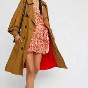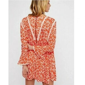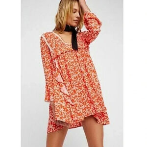 $128 FREE PEOPLE XS LIKE YOU BEST LONG SLEEVE MINI DRESS PRINT PAPRIKA ORANGE