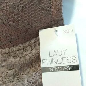 LADY PRINCESS INTIMATES Plunge V-Neck Satin & Lace Full Figure Bra Adjustable Shoulder Straps and Back Clasp Closure SIZE 38-D NWT