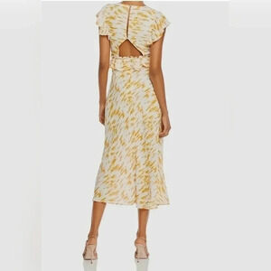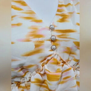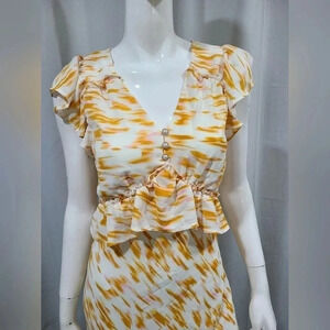 $128 Rahi Women's Yellow Marble Print Ruffle Short Sleeve Midi Sun Dress Small