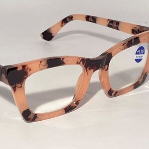 Spring Hinges With case. Upgrade your reading experience with these stylish 1.75 reading glasses. Featuring black and pink tortoise print frames with a square shape, these glasses offer both fashion and function. The lightweight and durable design makes them the perfect choice for everyday wear. With an attractive and modern look, these glasses will complement any outfit and style. So, whether you're reading a book, working at a computer, or just need a little extra help with reading, these glasses have got you covered. Enjoy clear and comfortable vision.