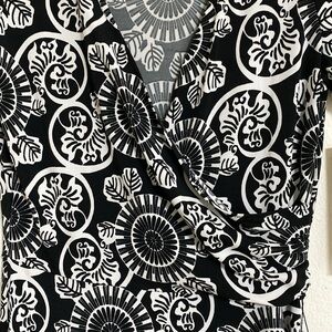 $129 NEW! DONNA MORGAN Faux Wrap Dress in black and White Size 6