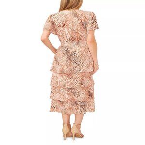 129$ VINCE CAMUTO Animal-Print Flutter Sleeve Tiered Midi Dress Size XL Beige