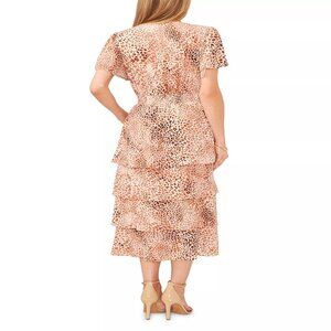Description: 129$ VINCE CAMUTO Animal-Print Flutter Sleeve Tiered Midi Dress