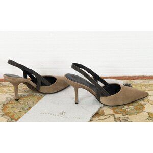 $1295 BRUNELLO CUCINELLI SUEDE SLINGBACK MULES WITH MONILI EMBELLISHMENTS 37