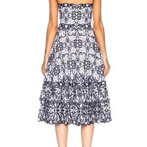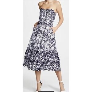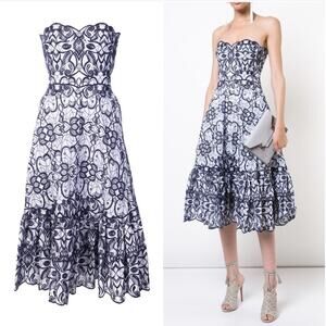 $1,295 JONATHAN SIMKHAI Scallop Bustier Midi Dress Sz 4 Blue White Embroidered