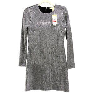 $1295 Michael Kors Crystal Embellished Scuba Long Sleeve Mini Dress NWT
