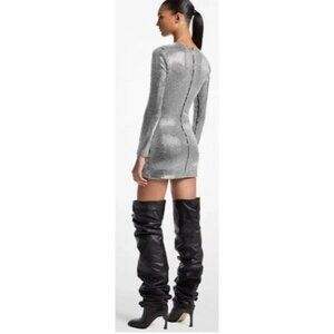 Made from scuba fabric and embellished with allover crystals, this body-hugging mini dress is designed to dazzle. The long sleeves make it a great option for chilly nights that call for getting dressed up. Accentuate the abbreviated hemline with over-the-knee boots.