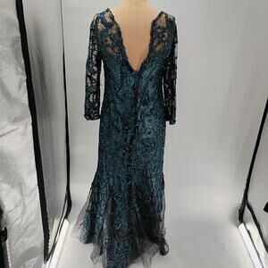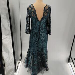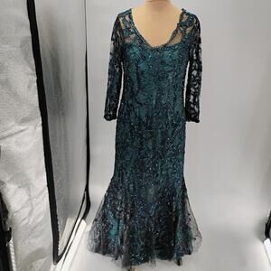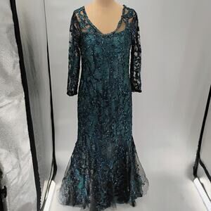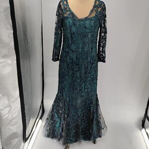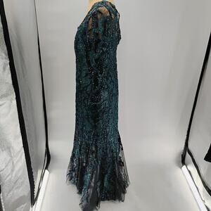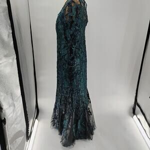 $1295 Rene Ruiz Collection Women's Green Floral Round Neck Gown Dress