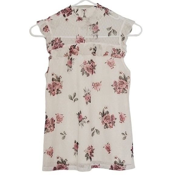 1298 * No Boundaries Floral Babydoll Blouse Cream Pink Size M (7/9)