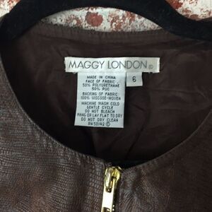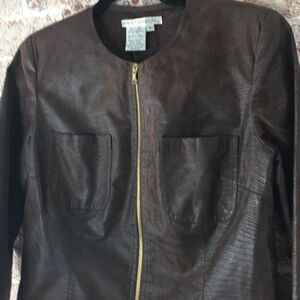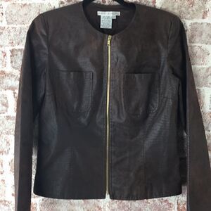 #129 MAGGY LONDON Brown Croc Print Leather Jacket