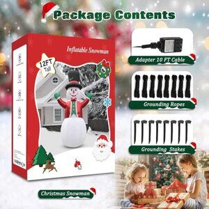 Giant Christmas Inflatable Snowman The cute 12FT tall Christmas inflatable snowman wears an adorable top hat and gorgeous red suit, raising both hands with a sweet warm smile to express welcome. It has built-in bright led lights to illuminate your yard lawn garden porch at night. Your friends and neighbors will be attracted by the eye-catching inflatable snowman. It’s one of the ideal choices for Christmas event decorations, Christmas Eve night decorations, Christmas outdoor yard decorations.