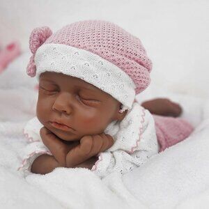 🆕12Inch Realistic Full Body Silicone Reborn tan Baby Girl Sleeping Reborn Dolls
