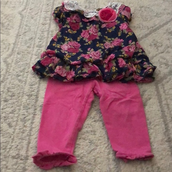 Navy and pink flowers with pink pants to match