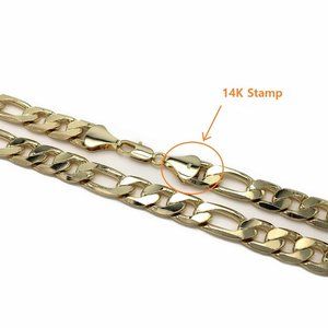THIS CHAIN IS 20", BUT MULTIPLE SIZES TO CHOOSE FROM! 12MM ITALIAN FIGARO NECKLACE! STAMPED 14K REAL GOLD PLATING!