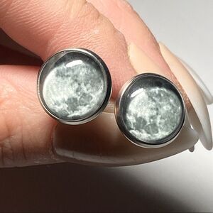 12MM, Glow In The Dark, Moon Stud Earrings, Unisex