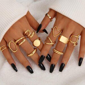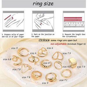 Gold Band Rings : You will get a 12 pieces gold ring set. Those rings come in many different styles, include heart, signet, square, tubular,chunky and twist ring. There are enough quantity to meet your different outfits, match a best look for yourself!