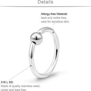 Features: This set includes six sizes of sleek, stainless steel captive bead rings with a flexible click closure—easy to put on and take off. Made from surgical-grade 316L stainless steel, they're durable, hypoallergenic, and resistant to rust and fading. Perfect for adding a subtle shimmer to any piercing, whether it's your nose, helix, septum, or even cartilage. Great for mixing and matching for different looks or stacking multiple piercings.