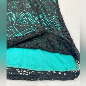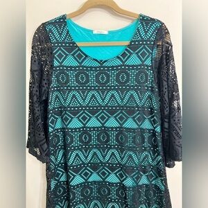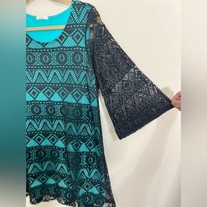 12PM BY MON AMI Scoop Neck Black Lace Overlay Mini Dress 3/4 Bell Sleeves Large