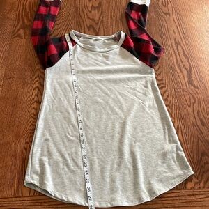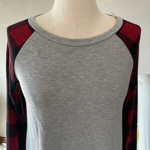 12PM by MON AMI women’s Red RAGLAND plaid sleeves sweatshirt / top / grey Small