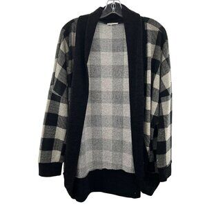 12PM by Mon Ami Women's Open Checkered Cardigan Black/Gray Size Large