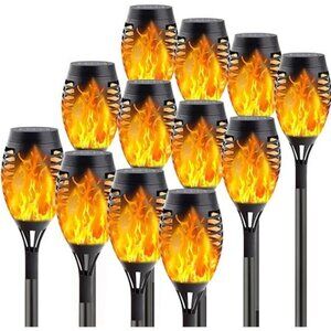 🧿2024 Upgraded 12-Pack 12LED Solar Torch Lights For Halloween Decorations:Super Bright & Upgraded Vivid Flame, With upgraded flame, these LED bulbs cast a soft vivid "flickering flame".Perfect for Outdoor Hallween Decorations.