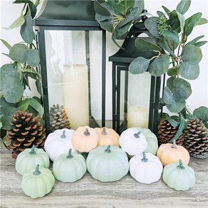 12Pcs Assorted Small Frosted Artificial Pumpkins Foam Pumpkins Rustic Harvest